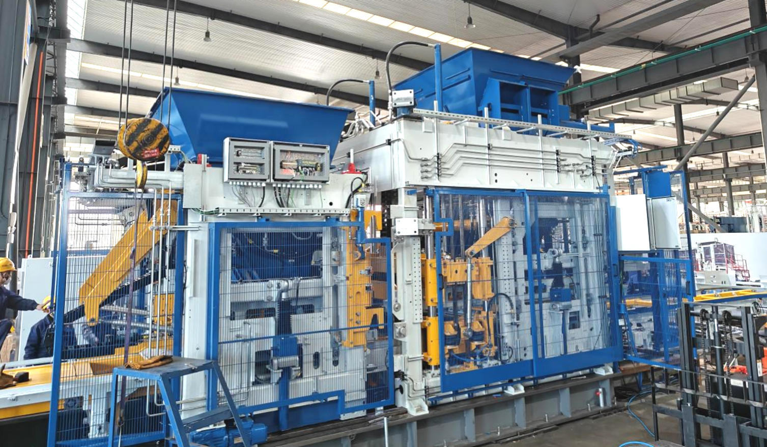 Lakoko imuse iṣẹ akanṣe, pipe fifi sori ẹrọ, iṣeto paramita, ati isọpọ eto ti ohun elo ṣiṣe biriki taara ni ipa iduroṣinṣin iṣelọpọ atẹle ati didara awọn bulọọki ti o pari. Lilo awọn ọdun ti imọ-ọwọ ni awọn ẹrọ biriki ti ko ni ina ti o ga julọ ati ohun elo ti o ṣẹda, awọn onimọ-ẹrọ Zenit kopa ninu awọn ilana to ṣe pataki. Ti n ṣiṣẹ ni pẹkipẹki pẹlu awọn onimọ-ẹrọ Quan Gong, wọn ṣe atunṣe ni ọna ṣiṣe ati iṣapeye eto gbigbọn ẹrọ akọkọ, ẹrọ pinpin ohun elo, ati awọn ọna ẹrọ iṣakoso hydraulic/itanna. Eyi ṣe idaniloju ohun elo naa n ṣetọju iṣẹ ṣiṣe daradara ati iduroṣinṣin labẹ awọn ipo iṣẹ lọpọlọpọ.
