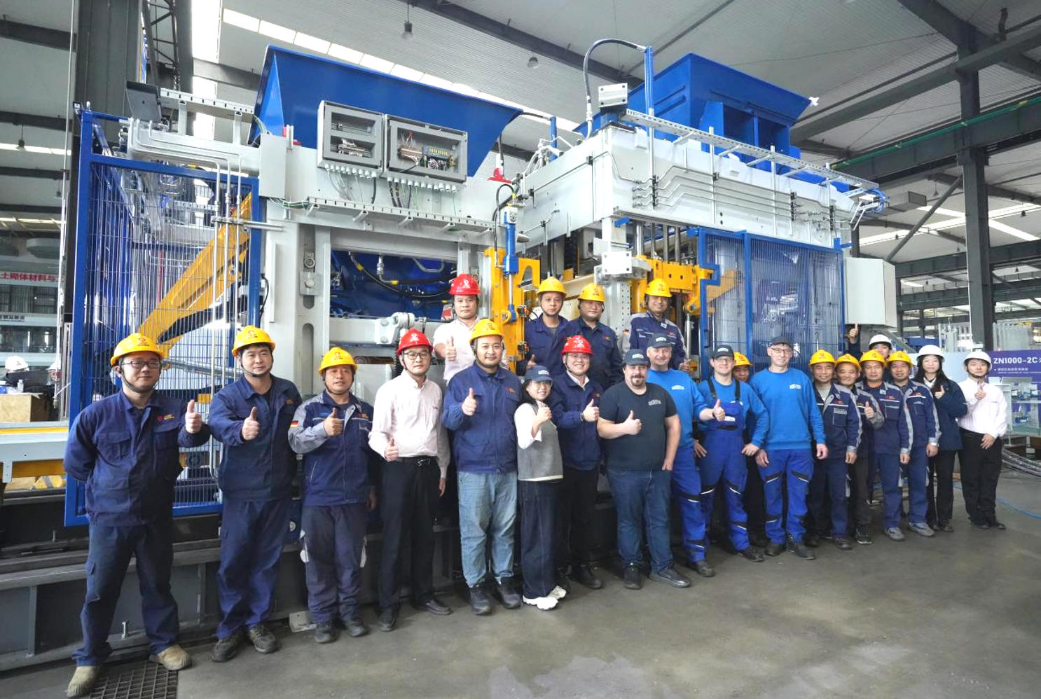 Ni akoko oni ti isọpọ iṣelọpọ agbaye ti o jinlẹ, lati rii daju pe iṣẹ ṣiṣe laini iṣelọpọ biriki adaṣe ti alabara ni kikun ti ṣaṣeyọri lori iṣeto-iṣeto, iṣẹ ṣiṣe didara to gaju, ZENITH — oniranlọwọ German ti Quangong Co., Ltd — laipẹ firanṣẹ ẹgbẹ kan ti awọn onimọ-ẹrọ giga si aaye iṣẹ akanṣe naa. Ẹgbẹ iwé yii darapọ mọ awọn ologun pẹlu awọn oṣiṣẹ imọ-ẹrọ inu ile ti Quangong lati ṣe agbekalẹ ẹgbẹ iṣẹ apapọ kan, ti n bẹrẹ awọn akitiyan ifowosowopo aladanla. Ifowosowopo yii ti ṣe agbekalẹ aabo imọ-ẹrọ to lagbara fun imuse aṣeyọri aṣeyọri ti iṣẹ akanṣe naa.